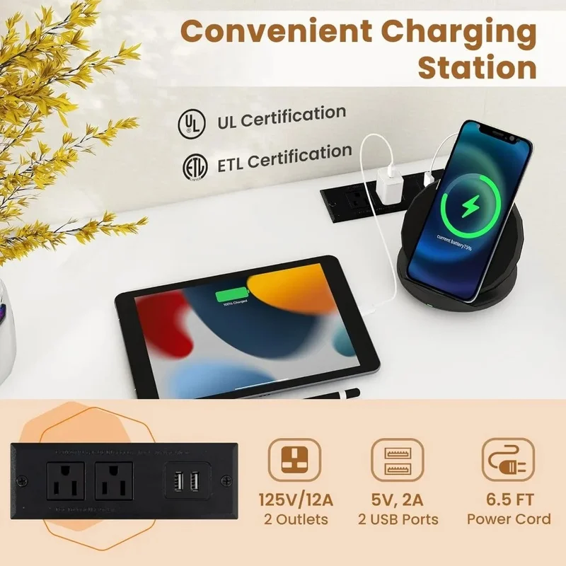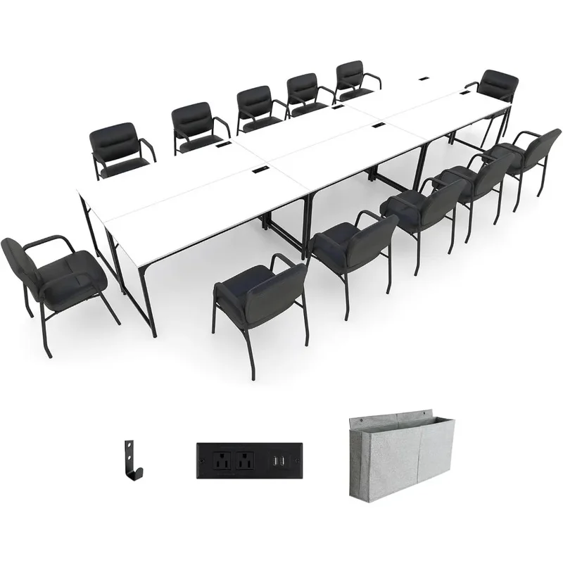 Large 30 FT Conference Table with Charging Station, 6 PCS 60" x 24" Rectangular Meeting Room Desk, Storage Bag & Hook, Spacious