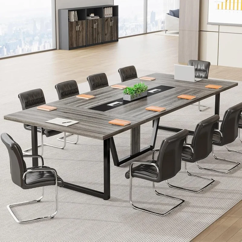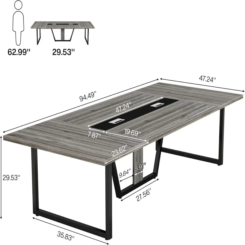 8FT Large Conference Table, 94.49" L x 47.24" W x 29.53" H, Spacious Meeting and Podcast Table for 10 People