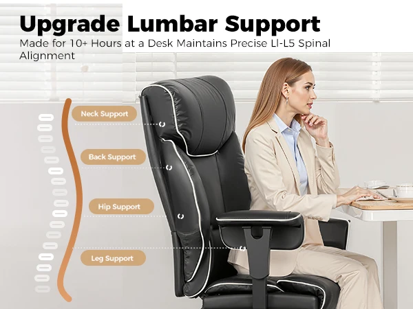 COMHOMA Big and Tall Office Chair 400lbs High Back Leather Executive Chair with Ergonomic Lumbar Support & Pocket Spring Cushion