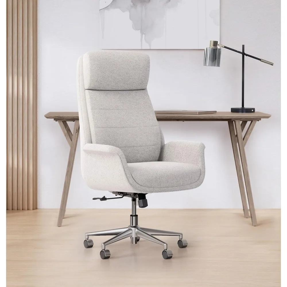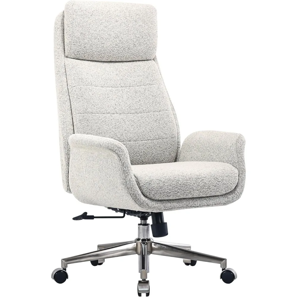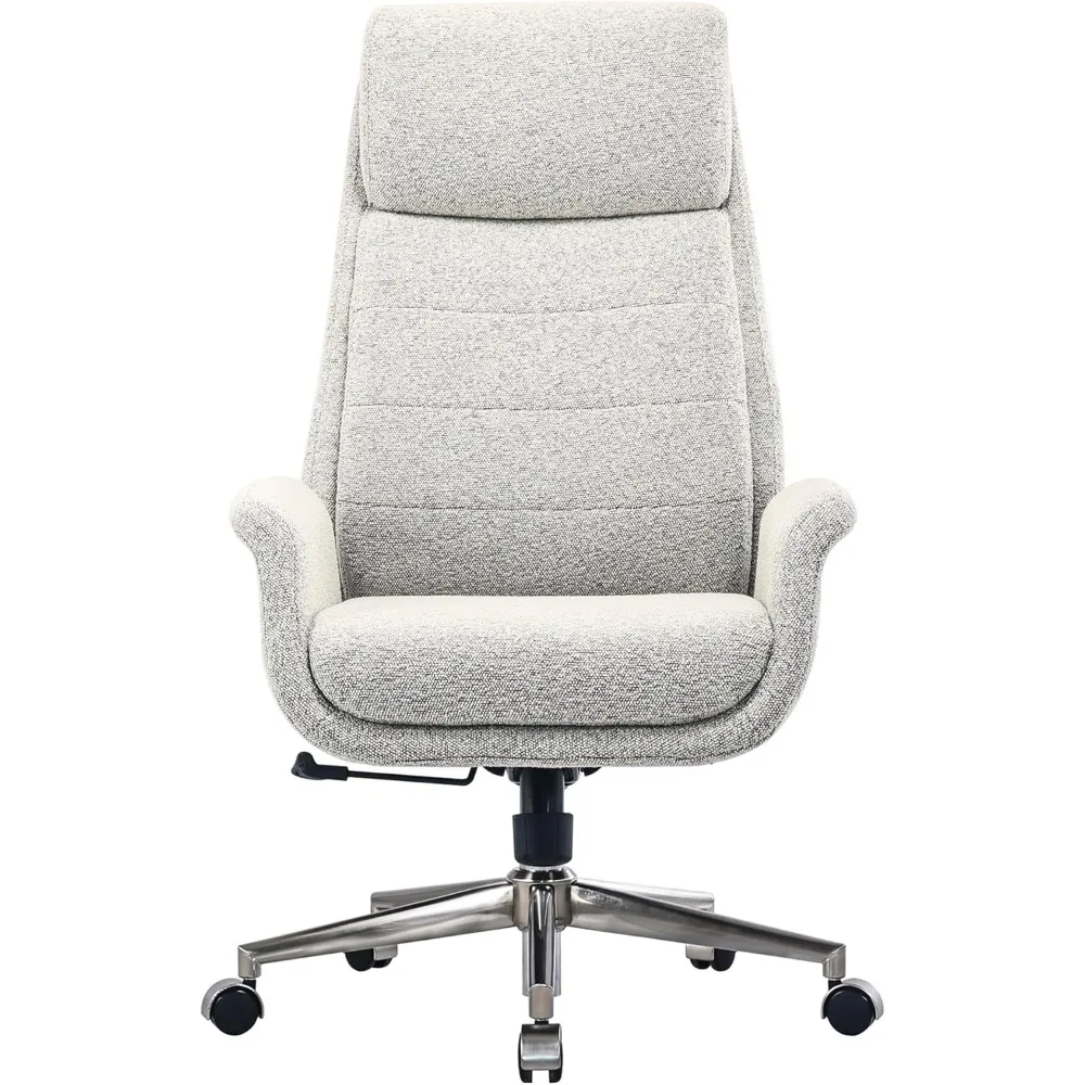 Modern Comfort Pizana Bouclé Fabric High-Back Executive Office Chair, Light Sand/Brushed Nickel, BIFMA Compliant
